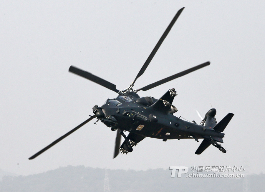 11月13日,我國自主研制生產(chǎn)的武直-10武裝直升機亮相在珠海舉行的第九屆中國國際航空航天博覽會,飛行表演展示了這款直升機的優(yōu)良性能。圖為武直-10垂直躍升。記者喬天富攝