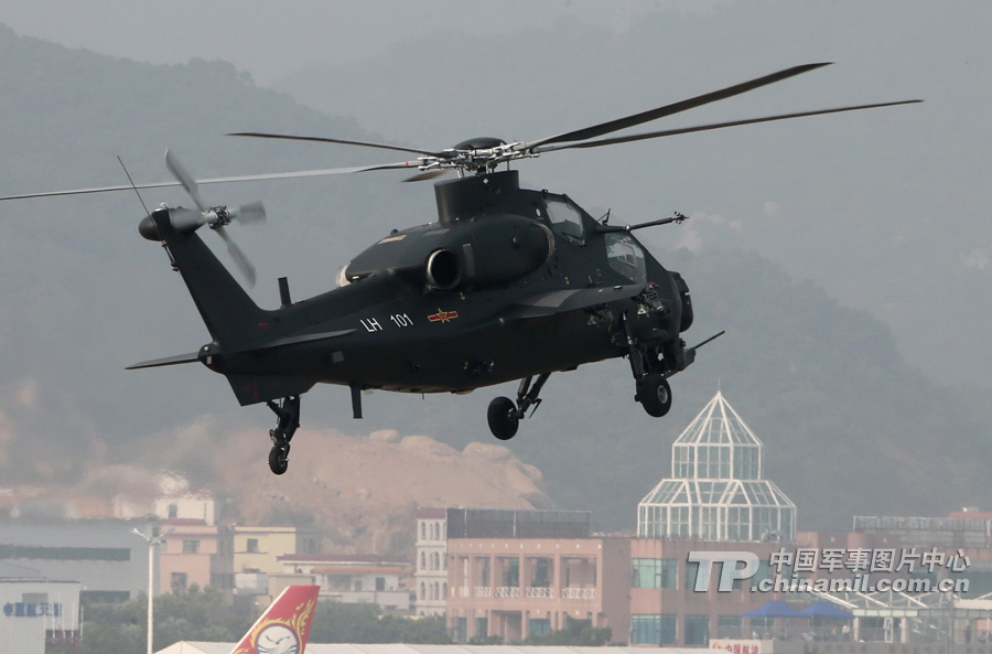 11月13日,我國(guó)自主研制生產(chǎn)的武直-10武裝直升機(jī)亮相在珠海舉行的第九屆中國(guó)國(guó)際航空航天博覽會(huì),在飛行表演中展示了這款直升機(jī)的優(yōu)良性能。圖為武直-10作360度旋轉(zhuǎn)。記者喬天富攝