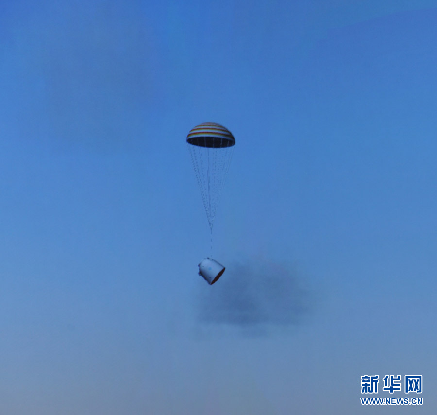 神舟十號(hào)打開(kāi)降落傘降落 李非攝