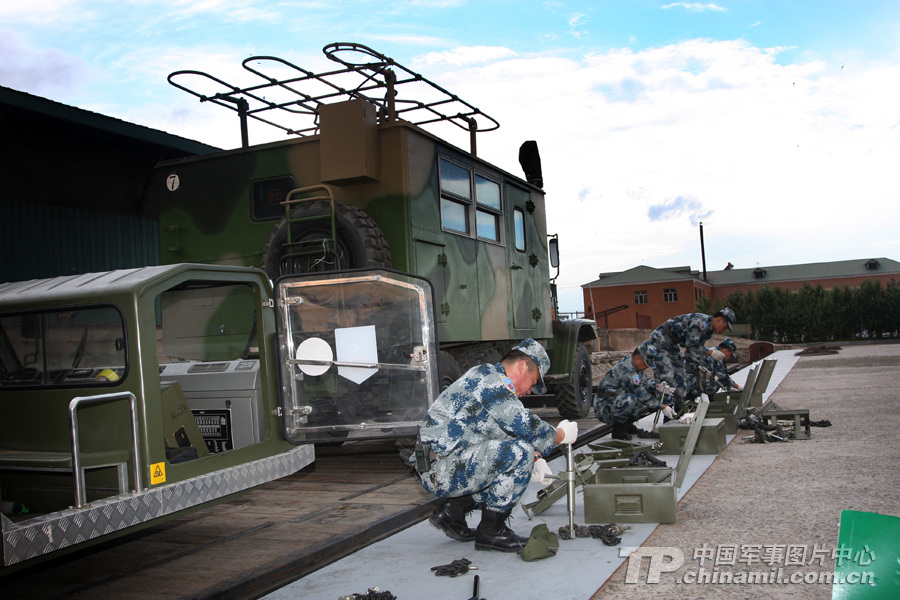 7月27日,參加中俄聯(lián)演的空軍戰(zhàn)斗群官兵在滿洲里火車站正從中方專列上往下卸載裝備。 曹占禮 攝