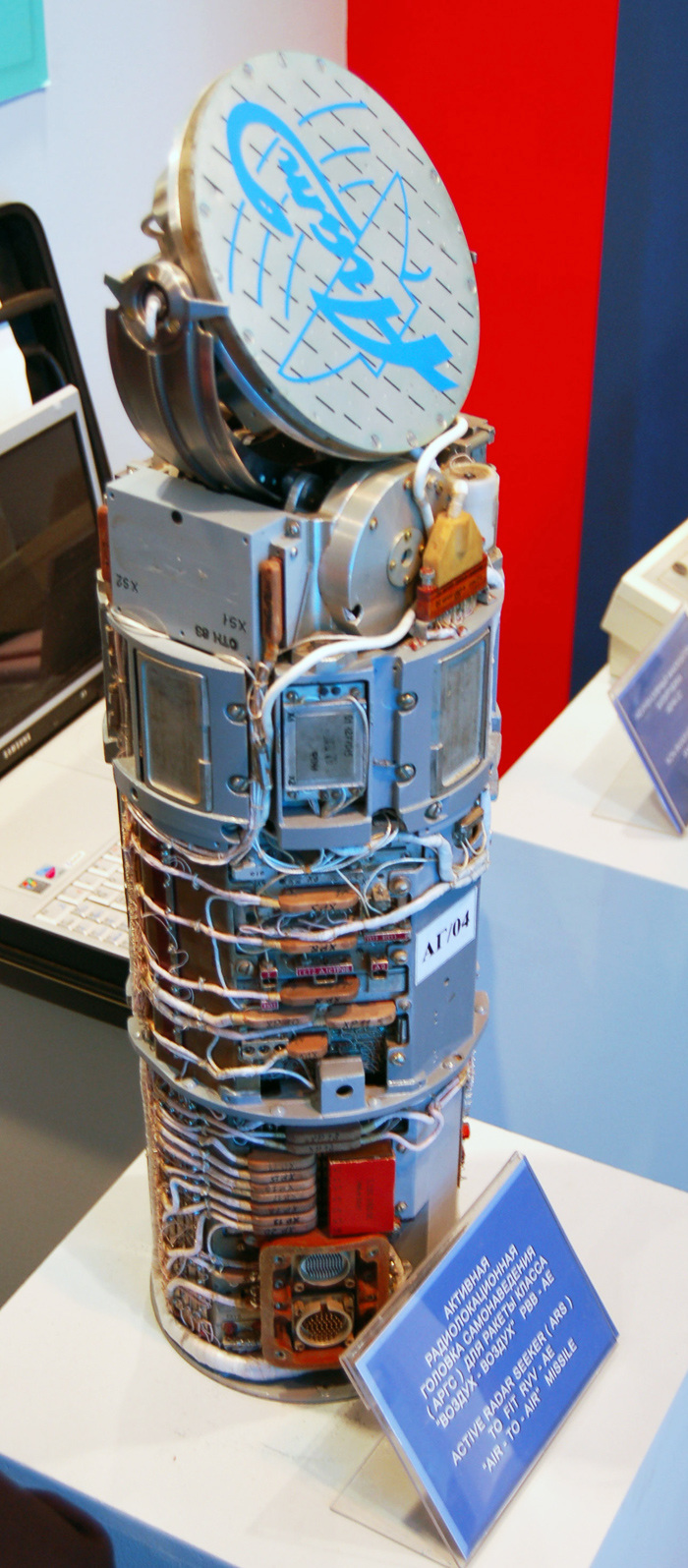 據(jù)俄羅斯媒體稱,上世紀(jì)80年代研制而成的R-77中程主動雷達(dá)制導(dǎo)導(dǎo)彈能夠?qū)崿F(xiàn)發(fā)射后不管,最初同樣由烏克蘭“阿爾焦姆”公司生產(chǎn),但在蘇聯(lián)解體后停產(chǎn)。90年代中期俄羅斯“信號旗”設(shè)計局自行組織批量生產(chǎn)出口型R-77導(dǎo)彈,代號RVV-AE,使用改進(jìn)型自導(dǎo)彈頭。隨后RVV-AE導(dǎo)彈成為所有蘇-27和米格-29系列新型和改型戰(zhàn)機不可分割的一部分,成為戰(zhàn)術(shù)導(dǎo)彈武器集團(tuán)的出口拳頭產(chǎn)品,創(chuàng)造了豐厚的外匯收入,其中僅向中國就供應(yīng)了大約1500枚,向印度供應(yīng)了至少800枚,現(xiàn)在還在繼續(xù)供應(yīng)。另外還在向其他一些國家出口。(圖為R-77的導(dǎo)引頭,它也是PL-12的技術(shù)來源之一)