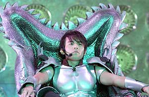 演唱會花樣百出,周杰倫穿上銀色盔甲,演唱開場的變奏版《雙截棍》,接著在巨大籠子里唱《半獸人》時,舞者還搭配扮成獸人群魔亂舞;唱完龍騰虎躍現(xiàn)場擊鼓式的《龍拳》,突然從天而降一個籃球架,讓周杰倫大展球藝;接著再演唱具濃厚中國風味的《斗!返;不論是服裝造型或是舞臺機關(guān),都叫人眼花繚亂。