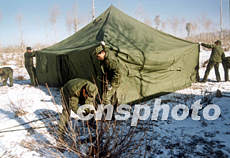 宛如一陣颶風卷過山谷,駕駛員飛快躍上駕駛室,按動車輛低溫啟動裝置,一陣馬達轟鳴,數(shù)百臺車輛一次點火啟動成功,車載帳篷從兩側(cè)緩緩自動收攏,野戰(zhàn)指揮所、野戰(zhàn)供修所等旋即變成了車載集裝箱。炮兵宿營點上,戰(zhàn)士們裝載輜重,掛鉤牽炮,迅速完成迷彩偽裝……僅30分鐘,全師由宿營轉(zhuǎn)入了行軍狀態(tài),帳篷村變成了行軍車隊,列陣雪野。