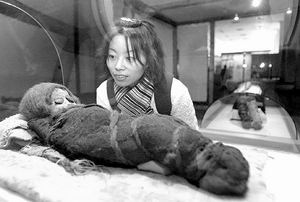 據(jù)京華時(shí)報(bào)報(bào)道,約公元前800年的扎滾魯克嬰兒木乃伊將首次在北京展出。明天,《天山·古道·東西風(fēng)———新疆絲綢之路文物特展》將在北京開(kāi)展,展品的時(shí)代跨度從約公元前9世紀(jì)至公元10世紀(jì)。其中,塔克拉瑪干沙漠出土的男尸、嬰尸等都是首次亮相北京。展覽將于4月15日結(jié)束。