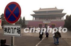 一月十五日,北京故宮神武門廣場(chǎng)豎起禁止停車的交通標(biāo)志牌。為恢復(fù)紫禁城周邊凝重幽靜的歷史原貌,故宮博物院決定從當(dāng)天開始廢止神武門外停車場(chǎng)。作者:張煒
