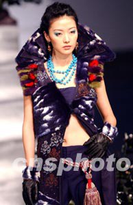 1月17日在香港時(shí)裝節(jié)舉辦的“香港青年時(shí)裝設(shè)計(jì)家創(chuàng)作表演賽2003”上,模特展示青年時(shí)裝設(shè)計(jì)師才華橫溢的時(shí)裝作品。中新社傳真 洪少葵 攝