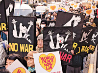 日本星期六掀起了全球周末反戰(zhàn)浪潮的第一波。五千多人星期六在首都東京集會(huì)﹐人數(shù)在日本全國當(dāng)天舉行的十來個(gè)抗議集會(huì)中最多。