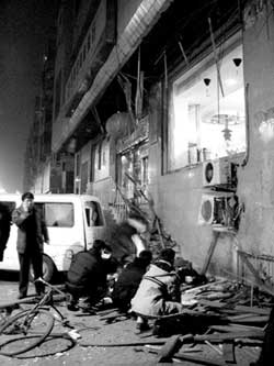 下午4時,在外科二病房,記者采訪了另一名重傷者劉雪森。醫(yī)生的建議是:再查一下傷者的脾等器官是否有傷。因為劉雪森被彈片傷得較重:頭部、胸部、四肢都有炸傷,并有金屬異物嵌入,渾身血肉模糊。因為有血氣胸,醫(yī)生已為他實施了左肺上楔形切除手術(shù),手術(shù)持續(xù)了約4個小時。目前,劉雪森的生命體征還算平穩(wěn)。