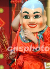 香港麥當(dāng)勞一月二十日在銅鑼灣時(shí)代廣場舉行“麥當(dāng)勞TM新年開心成雙”活動(dòng)。圖為“大頭娃娃”賀新春。錢興強(qiáng) 攝