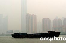 1月20日,今年首場大霧緊裹蘇浙滬等省市。上海郊區(qū)的能見度普遍不足100米。圖為黃浦江上一片朦朧。李江松 攝