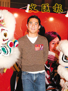 中新網(wǎng)1月24日電 賀歲片《行運(yùn)超人》昨天在香港舉行首映,梁朝偉偷空從《2046》的拍攝現(xiàn)場(chǎng)趕往出席,不過(guò)他為免戲中的造型曝光,先將二撇雞須脫下才出現(xiàn),他說(shuō)這次的造型是他自己構(gòu)思,想給觀眾有不同的感覺(jué)。