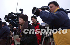 眾多記者等候臺灣包機抵達上海浦東機場。作者:張宇