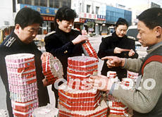 山東省棗莊市質(zhì)量技術監(jiān)督局執(zhí)法人員,春節(jié)前夕對轄區(qū)售賣煙花爆竹的攤點進行檢查,一些無日期、無用藥量的偽劣產(chǎn)品受到查封。作者:李 韓