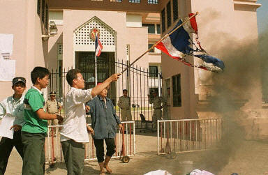 洪森說,當?shù)貢r間二十九日晚至三十日凌晨,在首都金邊發(fā)生了一系列由少數(shù)極端分子挑起的令人遺憾的暴力事件。他說:“他們造謠說,柬埔寨駐泰國使館遭到襲擊并造成柬外交官傷亡。這一謠言導致發(fā)生了燒毀泰國駐柬大使館以及一些泰資飯店、公司、電臺、電視臺等的暴力事件,使得發(fā)展中的柬泰關系降到了令人擔憂的地步。”