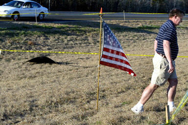 圖:美國人在飛機失事地區(qū)插美國國旗表達哀悼