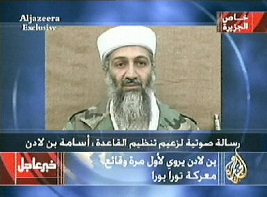 據(jù)報道,在11日晚間正常播放節(jié)目期間,半島電視臺的電視屏幕下方打著這樣一個標題:“‘基地’組織領導人奧薩馬·本·拉登號召所有穆斯林團結(jié)起來,共同保衛(wèi)伊拉克人民,半島電視臺將于稍晚時候播放一段錄音!