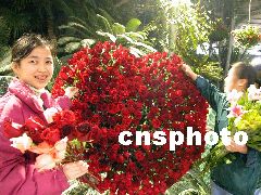 這個被制作者寓意為“世紀之愛”的巨型花束呈心型,由北京植物園工作人員花一天時間扎制而成。記者今天在現(xiàn)場看到,在制作者精心設計和綠葉映襯搭配下,心型花束色彩明麗,嬌艷欲滴。