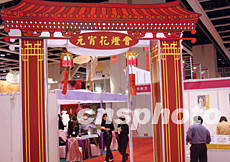 第三十屆情人節(jié)婚紗及結(jié)婚用品展,二月十四日在香港會(huì)展中心開幕,參展商為歡度元宵佳節(jié)在展會(huì)上搭起燈會(huì)牌坊。作者:錢興強(qiáng)