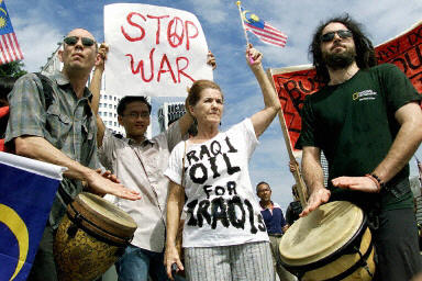 在泰國(guó),5000多名泰國(guó)各界民眾在曼谷舉行聲勢(shì)浩大的反戰(zhàn)示威,強(qiáng)烈反對(duì)美國(guó)企圖對(duì)伊拉克發(fā)動(dòng)戰(zhàn)爭(zhēng)。