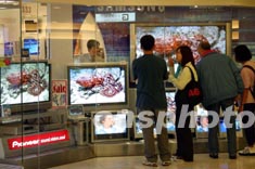 近來,全球品牌等離子電視機(jī)正以迅猛的速度進(jìn)軍香港市場,這種“先入為主”的格局,或許正是等離子電視機(jī)走進(jìn)香港百姓家庭的前奏。圖為香港一電器店展示各款價格不菲的等離子電視機(jī)。中新社傳真 潘索菲 攝
