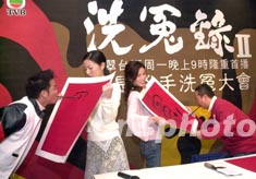劇中藝員歐錦棠、滕麗名、佘詩曼、歐陽震華(左起)于會上以口代手寫上"冤"字比拼,場面搞笑。
