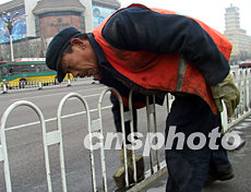 圖:北京環(huán)衛(wèi)工人清潔道路迎“兩會(huì)”