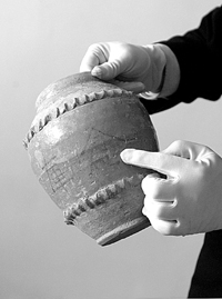 文物專(zhuān)家介紹,雖然文物經(jīng)濟(jì)價(jià)值并不是很高,但很有研究?jī)r(jià)值,其中一些在津京地區(qū)的文物市場(chǎng)上沒(méi)有見(jiàn)過(guò)。記者在現(xiàn)場(chǎng)了解到,年代屬新石器晚期時(shí)代———夏家店下層的就有四件,它們是四個(gè)陶鬲,專(zhuān)家介紹,它們能反映當(dāng)時(shí)的手工業(yè)發(fā)展情況;此外在南北朝的青釉堆紋罐中,有一件上刻有“褐彩‘倉(cāng)庫(kù)’銘”,研究人員可從這上面了解南北朝的生產(chǎn)及生活狀況,這批文物中有研究?jī)r(jià)值的還有很多。