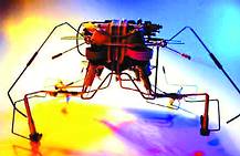 在模仿登陸火星的試驗(yàn)中,一輛漫游車攜帶的機(jī)器蜘蛛臨時(shí)替代出故障的無線電設(shè)備將信息傳送回總部。這個(gè)大出風(fēng)頭的機(jī)器蜘蛛,便是美國宇航局噴氣推進(jìn)實(shí)驗(yàn)室設(shè)計(jì)的昆蟲式機(jī)器人,它擁有異常靈活的腿,能跨越障礙,攀登巖石,探訪其他靠輪子滾動(dòng)前進(jìn)的機(jī)器人無法抵達(dá)的區(qū)域。