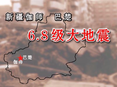 據(jù)中國地震臺(tái)網(wǎng)測(cè)定,北京時(shí)間今天十時(shí)零三分,在新疆伽師縣城東約四十公里處(北緯三十九點(diǎn)五度,東經(jīng)七十七點(diǎn)二度)發(fā)生六點(diǎn)八級(jí)地震。