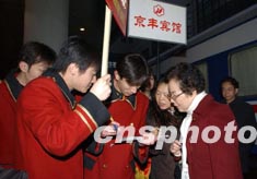 圖:賓館服務(wù)員迎接首批政協(xié)委員