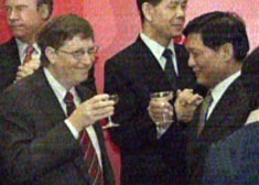 二十七日,北京市科學(xué)技術(shù)委員會(huì)和北京信息化辦公室與微軟(中國(guó))有限公司的簽署合作備忘錄儀式在北京舉行。北京市委書記劉淇(右)與比爾·蓋茨(左)出席簽字儀式。中新社圖