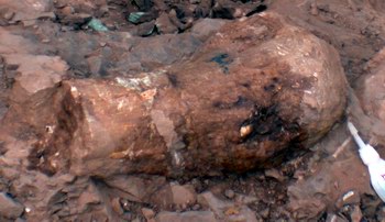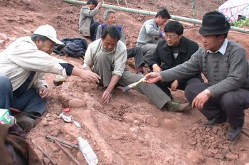中新網(wǎng)3月2日電 曾經(jīng)出土過(guò)許多恐龍蛋化石、骨化石的浙江省天臺(tái)縣,最近邀請(qǐng)有“龍王”美譽(yù)的中國(guó)科學(xué)院古脊椎古人類研究所著名恐龍專家董枝明教授、中國(guó)地質(zhì)科學(xué)院資源所礦物巖石學(xué)家陳克樵教授首次對(duì)恐龍骨化石進(jìn)行科學(xué)的搶救性挖掘。經(jīng)過(guò)近一周的工作,已發(fā)現(xiàn)了恐龍脊柱骨、肋骨、尾脊、小的甲片、前后肢等化石。