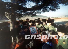 三月初,遼寧省撫順市解放軍官兵與當?shù)氐膶W生,來到雷鋒照片中的大松樹下,緬懷雷鋒。作者:陳剛