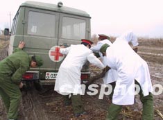 新疆地震災(zāi)區(qū)三月初連日雨雪天氣,道路泥濘,極大地影響了救援速度。圖為解放軍第十二醫(yī)院災(zāi)區(qū)醫(yī)療隊(duì)的救援車(chē)在途中被困。作者:閆文陸