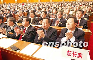 圖:部長(zhǎng)列席十屆全國(guó)人大一次會(huì)議