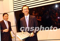 香港特區(qū)政府3月5日公布備受關(guān)注的香港2003至2004年度財(cái)政預(yù)算案,財(cái)政司司長(zhǎng)梁錦松與財(cái)經(jīng)事務(wù)及庫務(wù)局局長(zhǎng)馬時(shí)亨出席記者會(huì),回答有關(guān)預(yù)算案問題。 洪少葵 攝