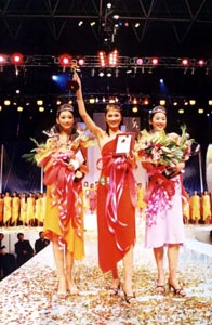 由中國服裝設計師協(xié)會、全國紡織教育學會、石獅市人民政府聯(lián)合主辦,中國職業(yè)時裝模特委員會承辦的“愛登堡”杯第三屆中國職業(yè)時裝模特選拔大賽總決賽,于8日晚上在福建省石獅市體育館隆重進行。經過四輪的時裝演繹,最終,來自青島東方麗人模特培訓藝術學校的戴小奕小姐榮獲冠軍。圖為獲前三名的選手:左起為季軍孫玉琦、冠軍戴小奕、亞軍薛婧。石勇 攝