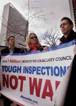 這份包括60萬美國人的簽名請愿書呼吁聯(lián)合國安理會繼續(xù)對伊拉克進行武器核查以避免戰(zhàn)爭。名叫“蠃得勝利,不用戰(zhàn)爭”的聯(lián)合會表示,他們希望通過這些安理會常任理事國代表向各自國家政府傳遞這樣一個信息:薩達姆·侯賽因可以在避免戰(zhàn)爭的情況下被監(jiān)督。他們這么做,旨在為聯(lián)合國核查人員爭取必要的時間以完成自己的職責(zé),而并不是請求什么不可實現(xiàn)的東西。