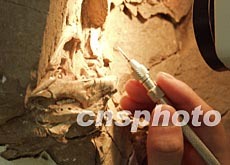 據(jù)介紹,這只小古角龍化石是吉大恐龍研究項目組于二00二年八月,對長春境內(nèi)的白堊紀恐龍進行發(fā)掘時發(fā)現(xiàn)的。當時共獲得了一百余塊含恐龍化石的巖石,其中以這具恐龍化石保存最為完好。昝館長表示,待修復工作完成后,博物館準備將這具恐龍化石裝架展出,屆時它將是第一具從長春市出土的裝架展出的恐龍化石。