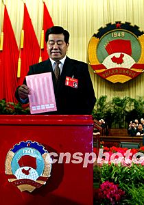 中新社北京三月十三日電(記者張素平)在今天下午召開的全國(guó)政協(xié)十屆一次會(huì)議選舉會(huì)議上,中共中央政治局常委賈慶林當(dāng)選為十屆全國(guó)政協(xié)主席。