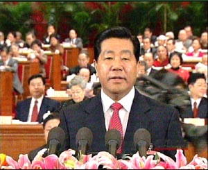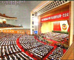 中新社3月14日電人民大會(huì)堂現(xiàn)場(chǎng)報(bào)道:全國(guó)政協(xié)十屆一次會(huì)議今天上午九時(shí)在人民大會(huì)堂舉行閉幕會(huì)。