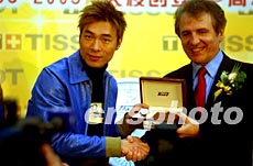 圖:瑞士天梭表總裁添寶向許志安贈(zèng)送天梭表