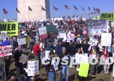 上萬美國人十五日在華盛頓紀(jì)念碑下集會,反對美國對伊動武。作者:中新社