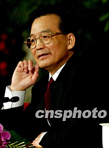 圖:溫家寶傾聽記者提問