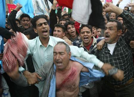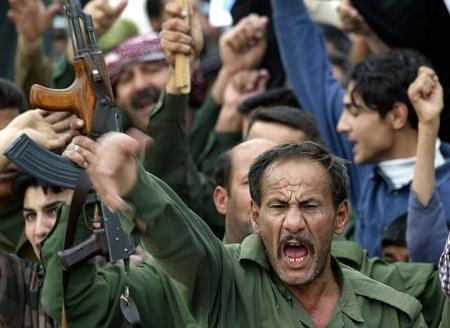 中新網(wǎng)3月19日電 當(dāng)?shù)貢r(shí)間3月18日,巴格達(dá)街頭爆發(fā)了大規(guī)模的抗議美軍入侵伊拉克的集會(huì)。由于薩達(dá)姆拒絕了美國的最后通牒,戰(zhàn)爭一觸即發(fā)。(春風(fēng))