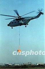 圖:中國海軍艦載直升機進行海陸補給訓(xùn)練