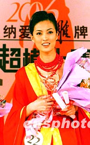 由廣東電視臺(tái)主辦、中國概念九八模特經(jīng)紀(jì)有限公司協(xié)辦的“納愛斯雕牌2003超級(jí)模特選拔賽”,三月二十二日晚在廣州舉行決賽。中新社傳真 錢興強(qiáng) 攝