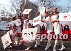 2003年中國散打王爭霸賽開賽在即,主辦方二十五日在北京推出美麗的散打王天使,為賽事造勢。作者:武仲林