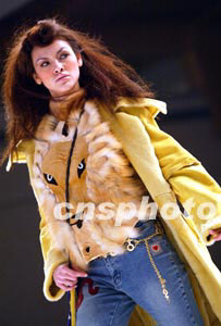 香港皮草服飾二十五日晚在北京舉行的中國國際時裝周上亮相,模特展示設計考究、做工精美的2003香港新款皮草。毛建軍 攝