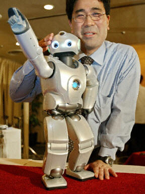 27日,日本SONY公司在東京展示了新研制的“SDR-4X II”型機(jī)器人,這種型號(hào)的機(jī)器人會(huì)跳舞,且能夠與人通話、通過(guò)傳感器越過(guò)障礙物行走!癝DR-4X II”型機(jī)器人將在4月3日的橫濱2003機(jī)器人展上亮相。